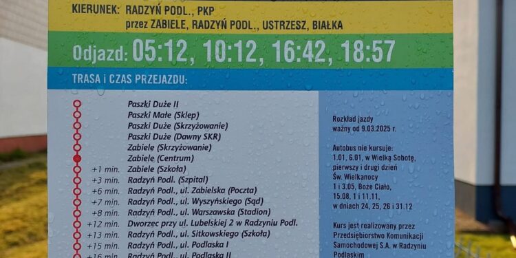 Nowy rozkład został dostosowany do aktualnych godzin odjazdów pociągów ze stacji w Bedlnie Radzyńskim, co pozwoli pasażerom na dogodne przesiadki na połączenia kolejowe.